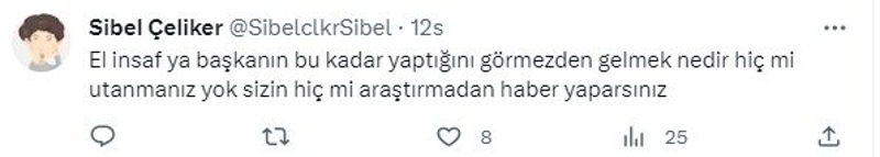 Sibel Çeliker isimli başka bir bot hesapta Yavaş'ın hiçbir projesinden örnek vermeden, "El insaf ya başkanın bu kadar yaptığını görmezden gelmek nedir hiç mi utanmanız yok" şeklinde paylaşım yaptı.