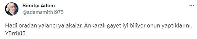 Simitçi Adem de, "Hadi oradan yalancı yalakalar. Ankaralı gayet iyi biliyor onun yaptıklarını. Yürrüüü." dedi.