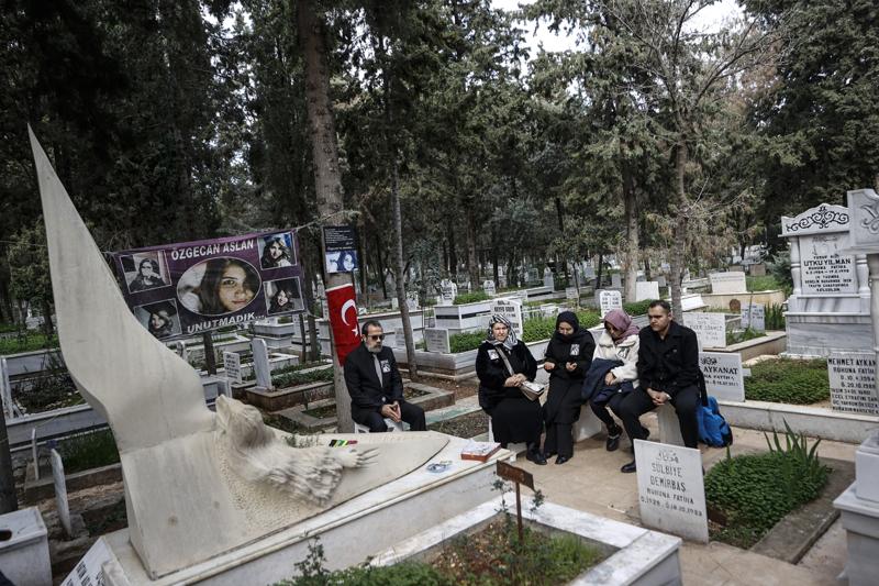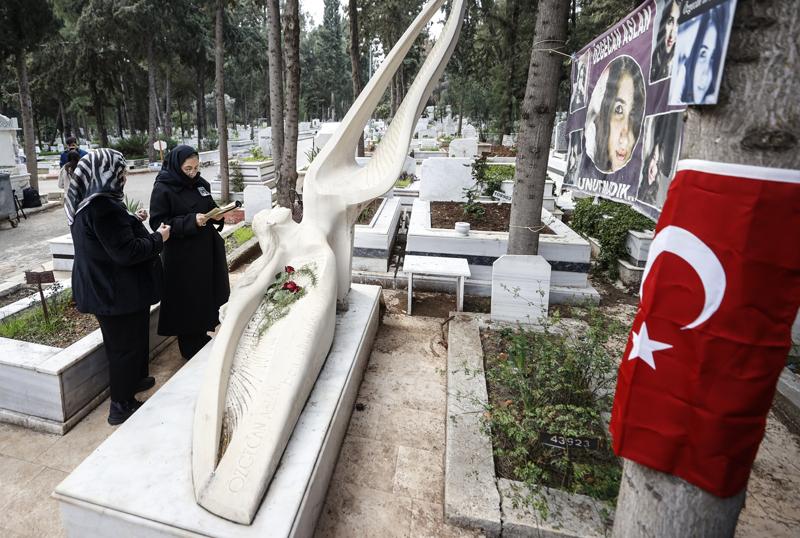Anne Songül ve baba Mehmet Aslan, Tarsus ilçesinde 11 Şubat 2015'te 19 yaşındayken öldürülen kızlarının Mersin Şehir Mezarlığı'ndaki melek figürlü anıt mezarını ziyaret etti.