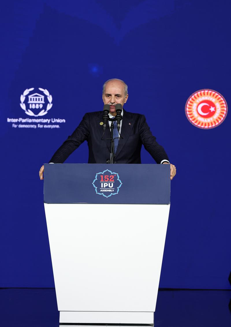 Parlamentolar Arası Birlik'in (PAB) "Gelecek Nesiller için Umudu Yeşertmek, Barışı Sağlamak ve Adaleti Temin Etmek" temalı 152'nci Genel Kurulu, TBMM Başkanı Kurtulmuş'un ev sahipliğinde İstanbul'da başladı.