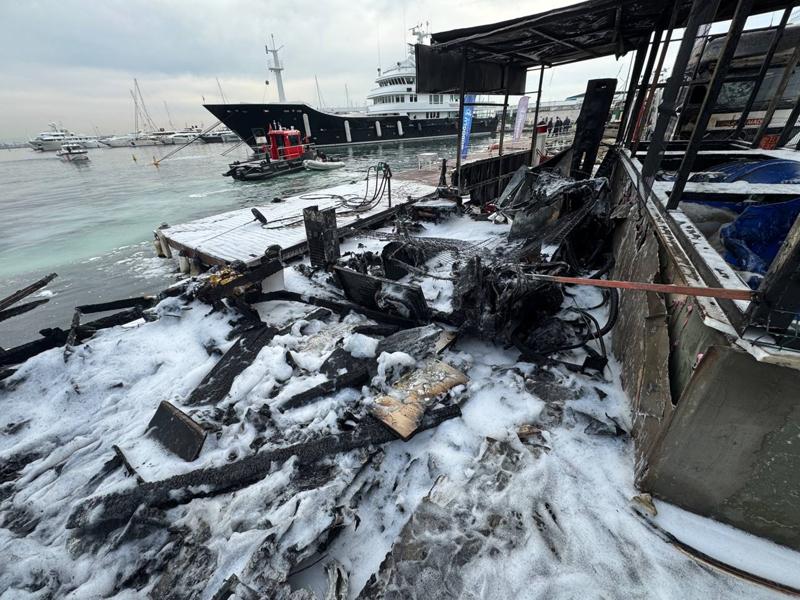Batı Mahallesi Sahil Bulvarı'nda yat limanındaki yakıt istasyonunda yer alan atık yağ depolama alanında, henüz belirlenemeyen nedenle yangın çıktı.