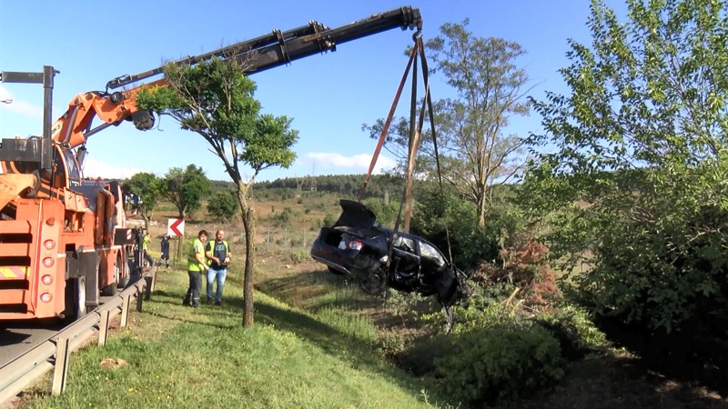 Kazaya karışan otomobil vinç yardımı ile bulunduğu yerden alınarak çekici ile olay yerinden götürüldü.