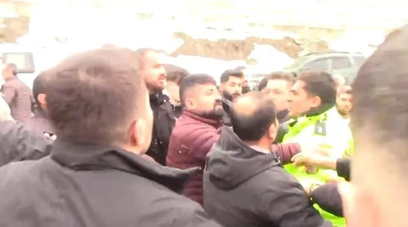 Emniyet güçlerinin tarafları sakinleştirmek için geldiği olay yerine ait bir görüntü ortaya çıktı. Görüntülerde Yalçın Kaval isimli şahsın emniyet amirine bir polis memuru için, "O köpeğinizi buraya getireceksiniz" şeklinde sözler sarf ettiği görüldü. Hakaret içerikli sözleri nedeniyle ifadesi alınmak istenen Kaval ve çevresinde bulunan kalabalık emniyet güçlerine saldırdı. Polisler olayların büyümemesi için gözaltını daha sonra yapmaya karar verdi.
