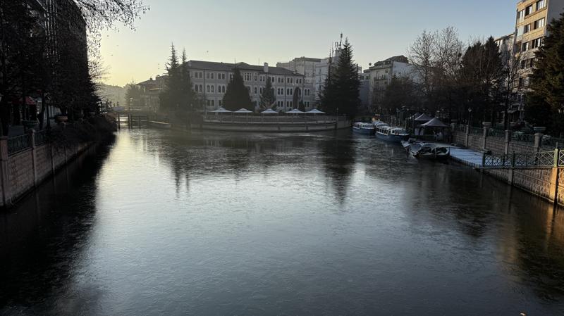 Kentte hava sıcaklığının sıfırın altında 3 dereceye kadar düşmesi günlük hayatı olumsuz etkilerken, Porsuk Çayı'nın yüzeyi buz tabakasıyla kaplandı.