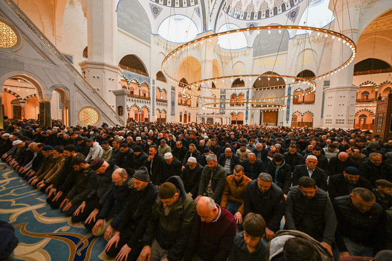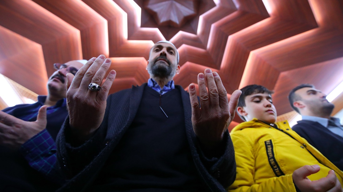 Kahramanmaraş'taki Abdülhamid Han Camisi'ne gelen vatandaşlar, Kur'an-ı Kerim tilaveti ve vaazı dinledikten sonra namaz kıldı.