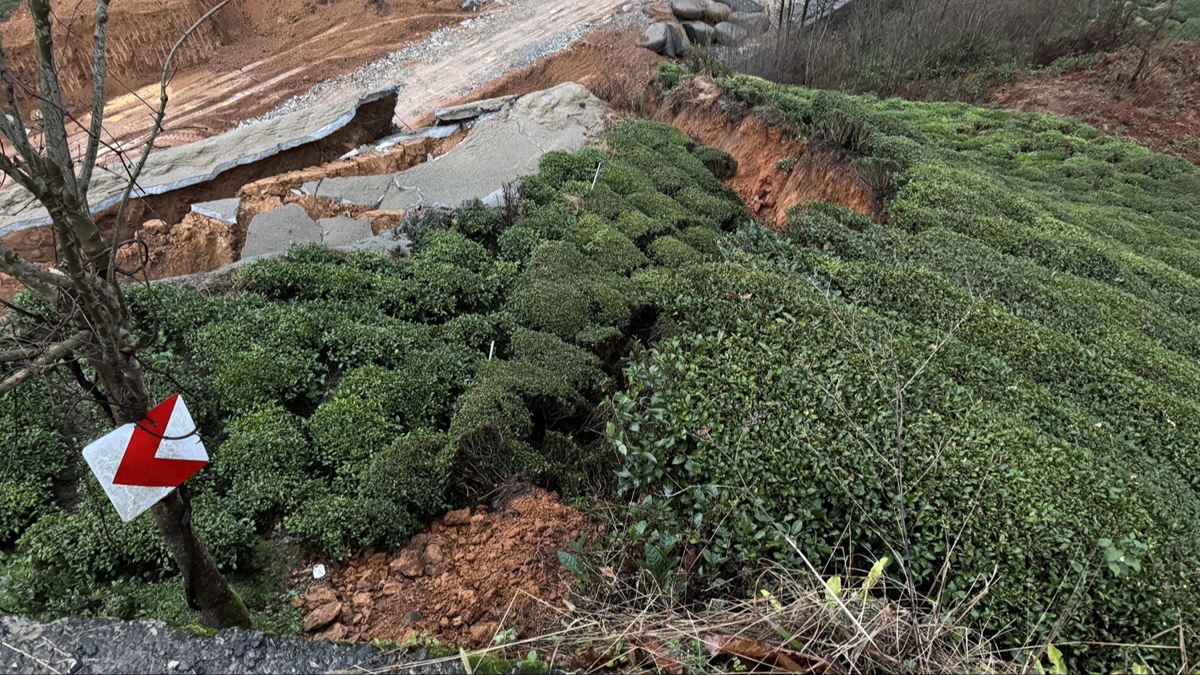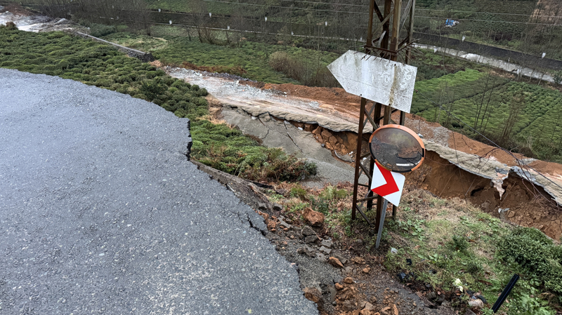 Yolun kenarındaki istinat duvarının çökmesi sonucu toprak kayması meydana geldi. Yol kenarındaki yüksek gerilim direği de çökme nedeniyle aşağı kaydı.