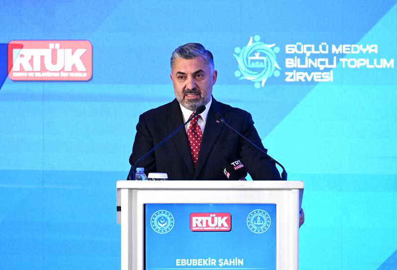 Şahin, RTÜK tarafından medya içeriklerinin toplumsal yapı üzerindeki etkilerini kapsamlı bir bakış açısıyla ele almak amacıyla düzenlenen "Güçlü Medya, Bilinçli Toplum Zirvesi"nin kapanış oturumunda konuştu.