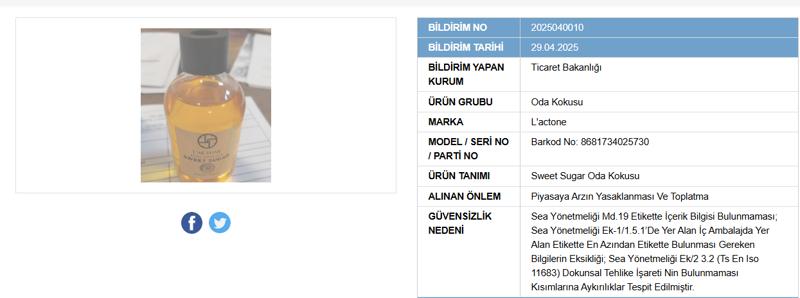 L'actone marka oda kokularının güvensizlik nedeni olarak ise şu gerekçe sunuldu: