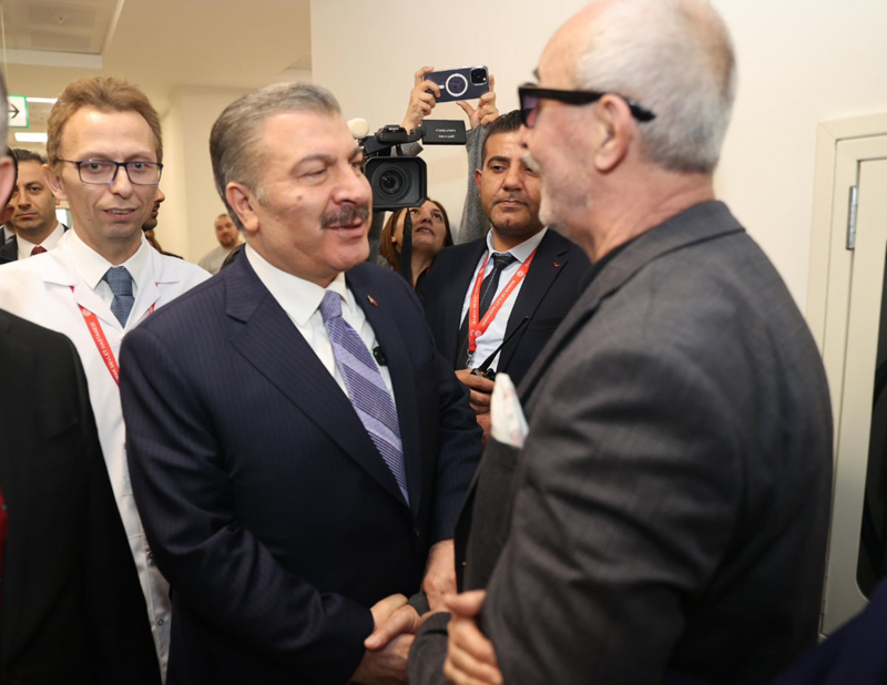 Hastanede tedavi gören hastalarla ve hasta yakınlarıyla sohbet edip durumlarını soran Koca, hastane hakkında da bilgi aldı.