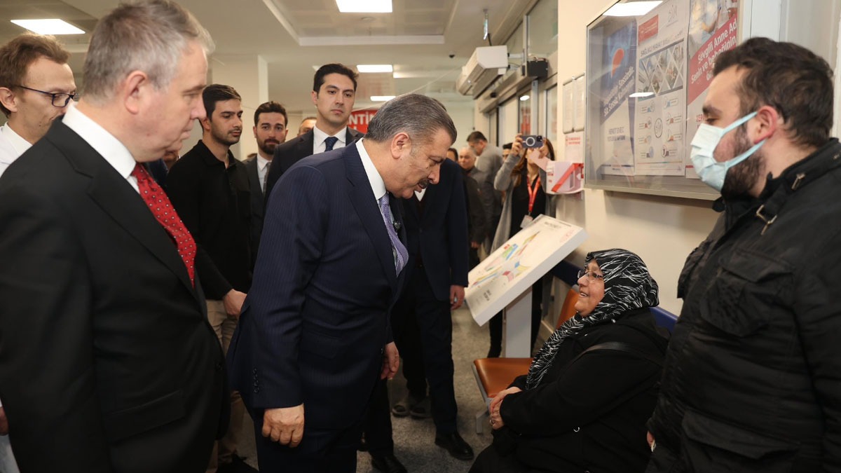 Hastanede tedavi gören hastalarla ve hasta yakınlarıyla sohbet edip durumlarını soran Koca, hastane hakkında da bilgi aldı.