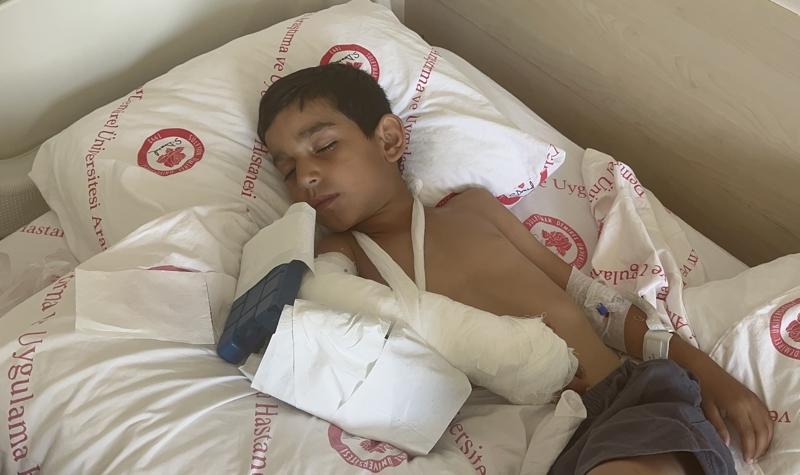 Fatih Mahallesi'nde arkadaşını çağırmak için dışarı çıkan Furkan Çakır'a sahipsiz köpekler saldırdı. Köpeklerden kaçarken duvardan atlayan çocuk kolundan yaralandı.