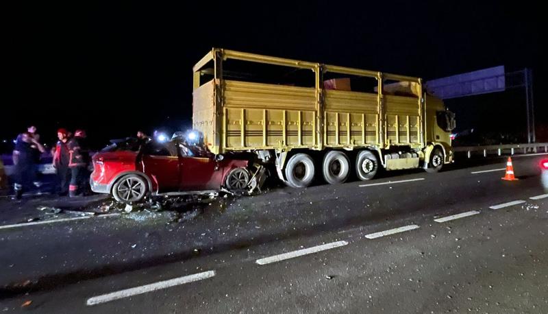 D-650 kara yolu Bilecik istikametinde seyreden Bahadır Yavuz (38) idaresindeki 16 EAE 14 plakalı SUV tipi araç, Pamukova girişinde, polis kontrol noktasında tek şeride inen yolda, sürücüsünün ismi öğrenilemeyen 33 VY 470 plakalı kamyona arkadan çarptı.