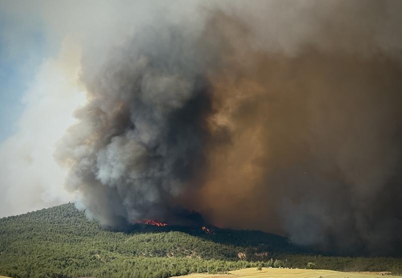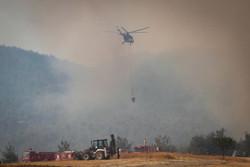 "İlk aşamada 8 uçak, 14 helikopter ve kara araçlarıyla AFAD'ın da koordinesinde diğer kurumların katkılarıyla birlikte çok ciddi bir kara müdahalesiyle yangının söndürülmesi çalışmaları başladı. Bu sabah itibarıyla yoğun sis ve duman sebebiyle saat 11.00'e kadar maalesef hava araçlarımız yangının bulunduğu alana giremedi. Ancak saat 11.00 gibi bu sisin ve yoğun dumanın dağılmasıyla yine havadan ve karadan müdahaleler devam etti. Bu süreçte risk teşkil eden Taşoluk, Hacılar ve Kızılöz köyleri tedbiren boşaltıldı. Bu köylerde üç ev, bir ahır, bir samanlık ve 4 terk edilmiş mesken hasar gördü."