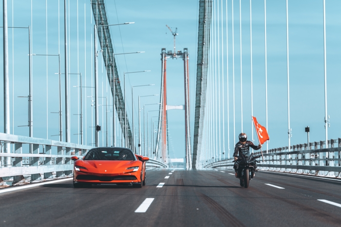 Sofuoğlu, yaptığı açıklamada, Ferrari SF90 ile Kawasaki HR2'nin 1915 Çanakkale Köprüsü'nde yarışmasının hayallerinden biri olduğunu söyledi.