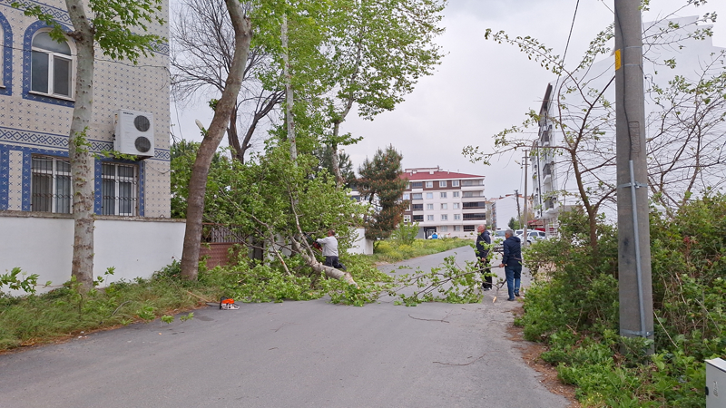 Yola devrilen ağaçlar ise ekipler ve vatandaşların yardımıyla kaldırıldı.