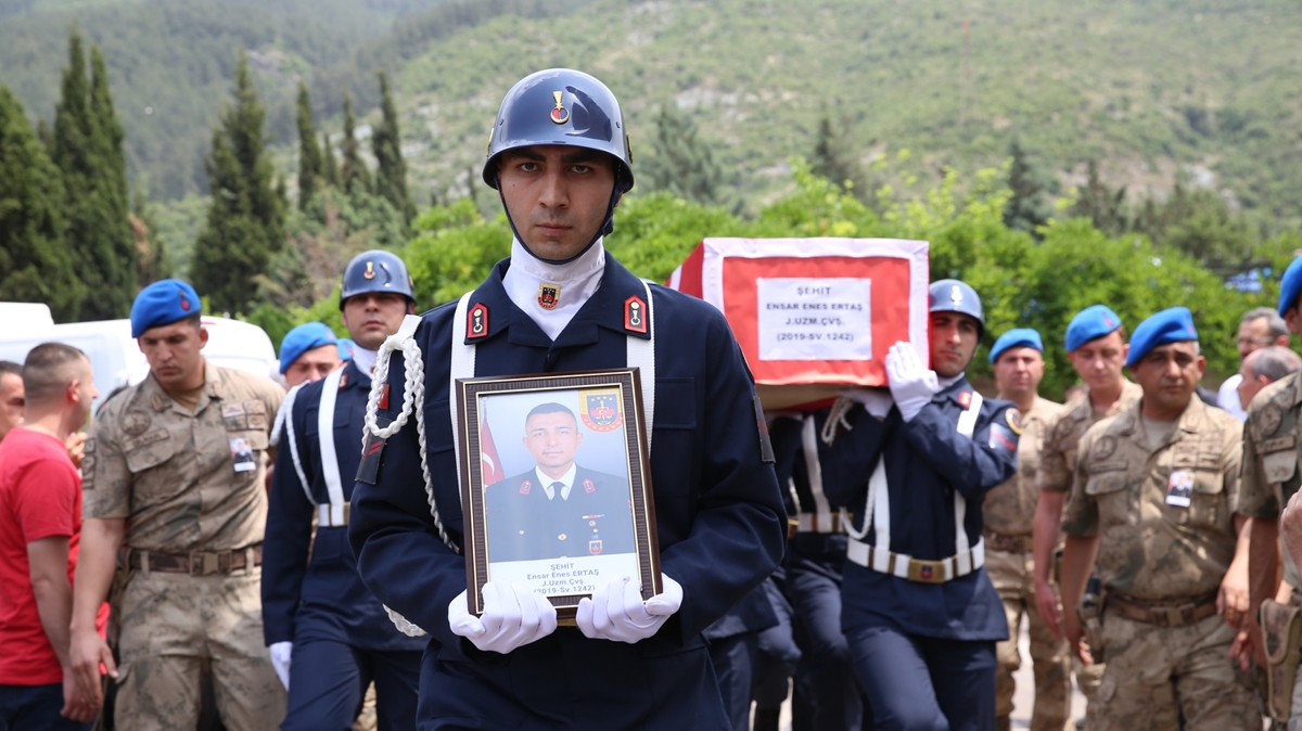 Şırnak'ta Gabar Dağı Pire Tepe mevkisinde dün askeri aracın kontrolden çıkarak devrilmesi sonucu Jandarma Uzman Çavuş Ensar Enes Ertaş ve Jandarma Astsubay Çavuş Mustafa Şen şehit olmuş, 2 asker yaralanmıştı.