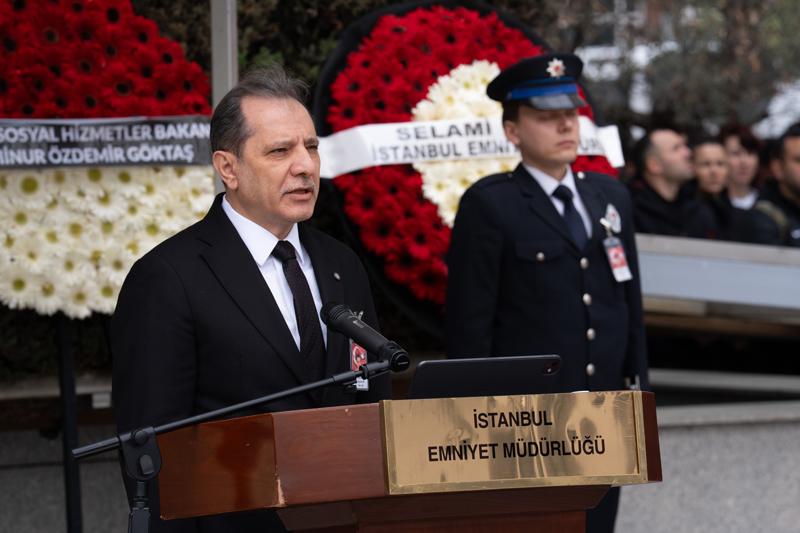 Emniyet Müdürü Yıldız, törendeki konuşmasında, başta bekçinin yüreği yanan ailesi olmak üzere tüm yakınlarına, emniyet teşkilatına ve aziz Türk milletine başsağlığı diledi.