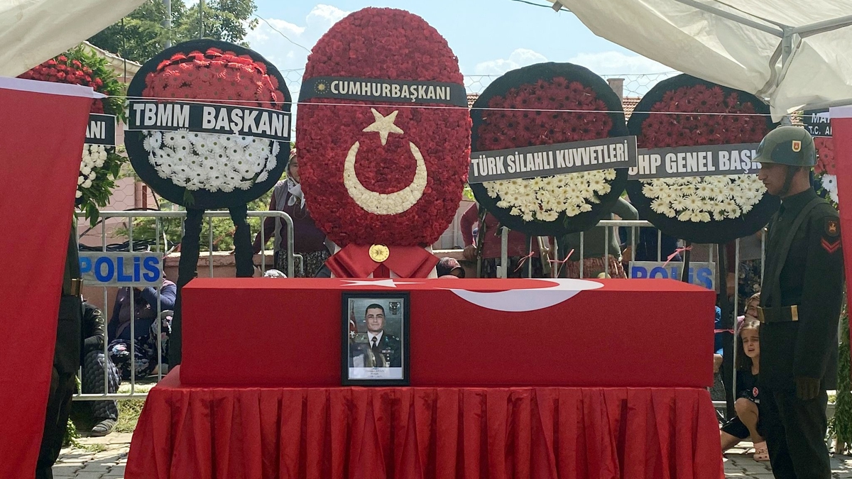 Cenaze namazı öncesinde, şehidin eşi Nazan, annesi Gülümser ve kardeşi Elif Ayan tabuta sarılarak gözyaşı döktü.