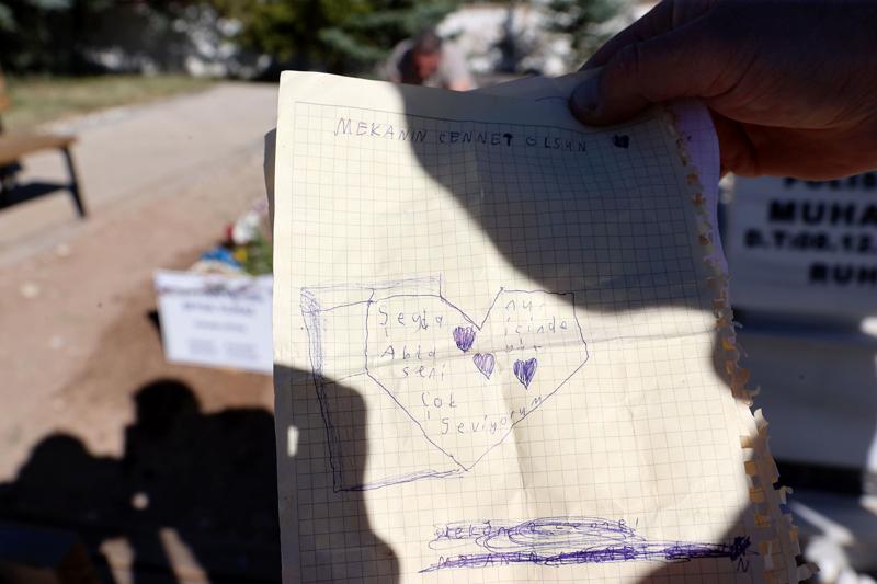 Bazı çocuklar tarafından çizilen şehidin resimleri de kabrine bırakılan mektuplar arasında yer aldı.