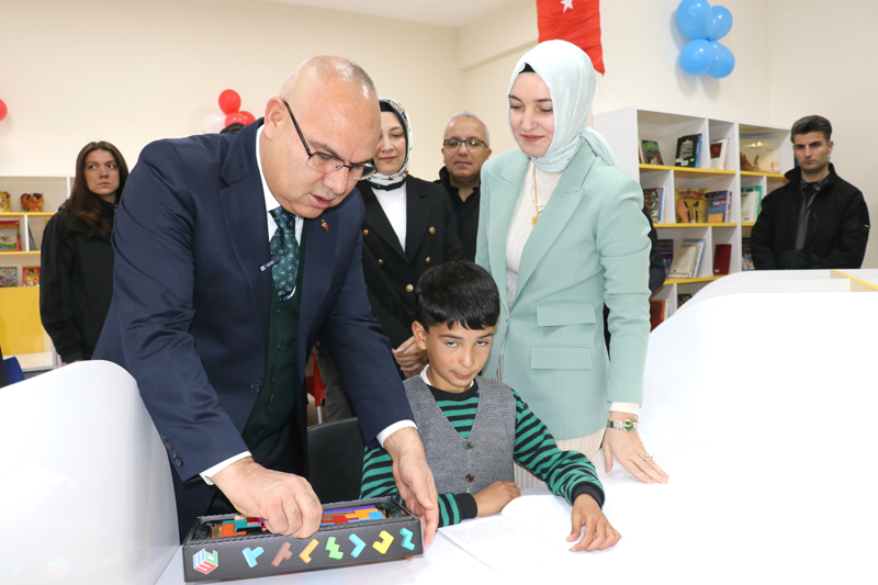Kütüphanede incelemelerde bulunup çocuklarla sohbet eden Vali Koç, desteklerinden dolayı Polis Eşleri Derneği Ağrı Şube Başkanı İpar'a ve bir polis memuruna plaket verdi.