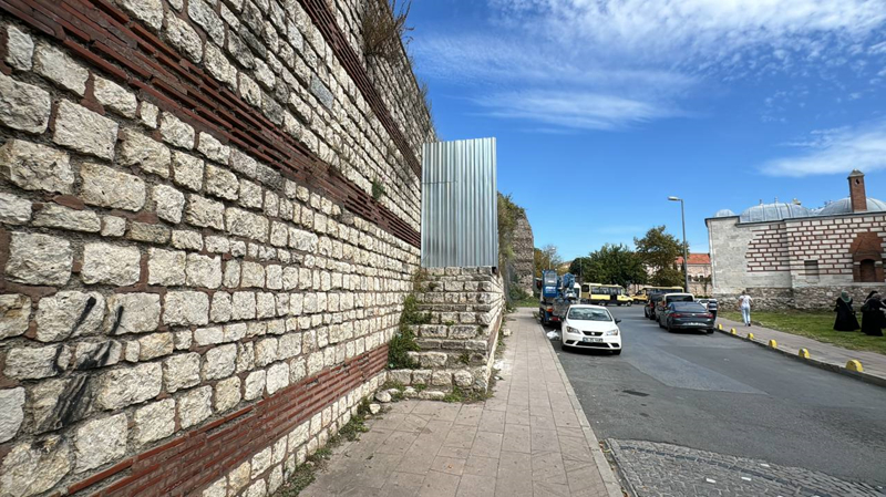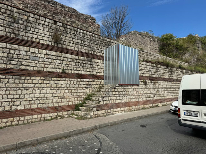 Güvenlik önlemleri kapsamında surlara çıkan merdivenlerin demir bariyerlerle kapatıldığı görüldü.