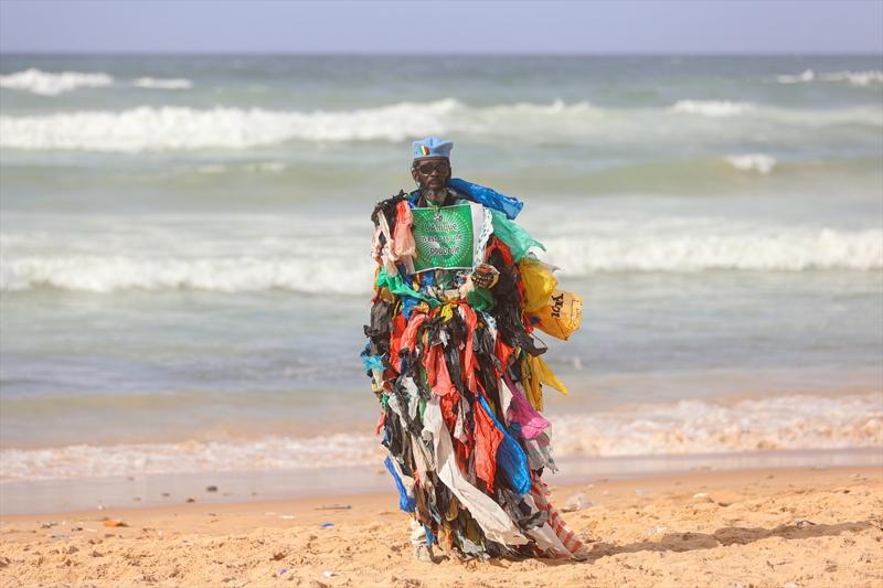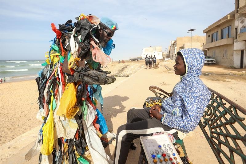 Plastik Adam Fall, "30 Mart Uluslararası Sıfır Atık Günü" dolayısıyla AA muhabiriyle Yoff plajını dolaştı.