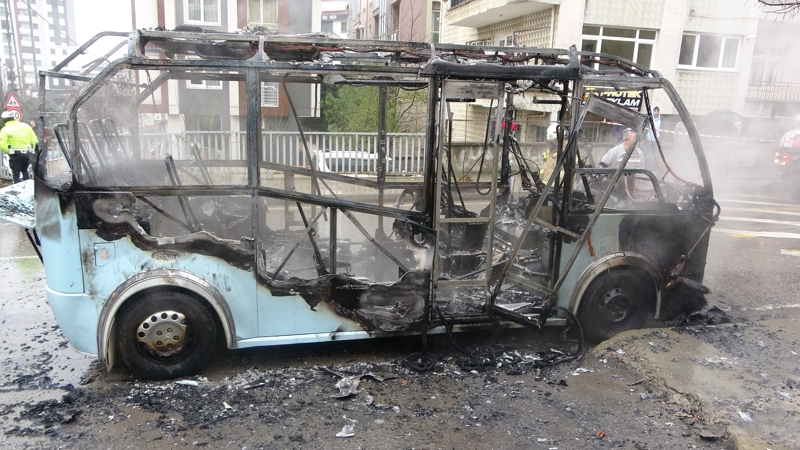 Durumu fark eden şoför minibüsü durdurarak araçta bulunan 20 yolcuyu tahliye etti. Alevlerin yükseldiği yangında ara ara patlamalar meydana geldi. İhbar üzerine olay yerine gelen itfaiye ekipleri, alevlere müdahale ederek yangını söndürdü.