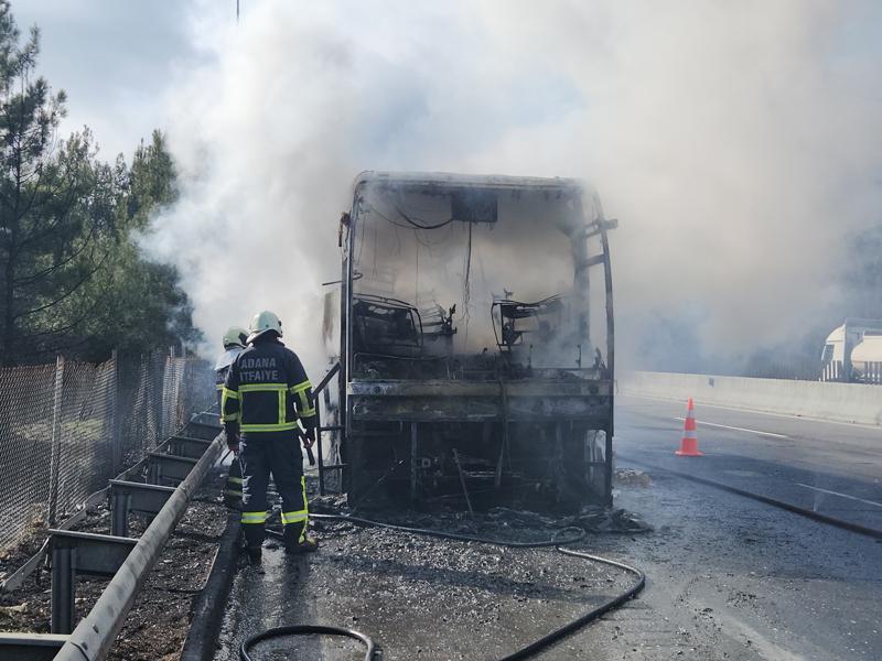 Adana'dan Yalova'ya giden Yılmaz Üner'in kullandığı içinde 8 yolcu bulunan otobüs, Adana-Pozantı Otoyolu'nun Akçatekir mevkisinde motor kısmından alev aldı.