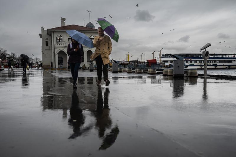İstanbul'da sabah saatlerinden itibaren yağmur ve soğuk hava etkili oluyor. Hava sıcaklıkları düne göre 5 derece düştü. Taksim'de yağmura hazırlıksız yakalananlar saçaklara sığındı.
