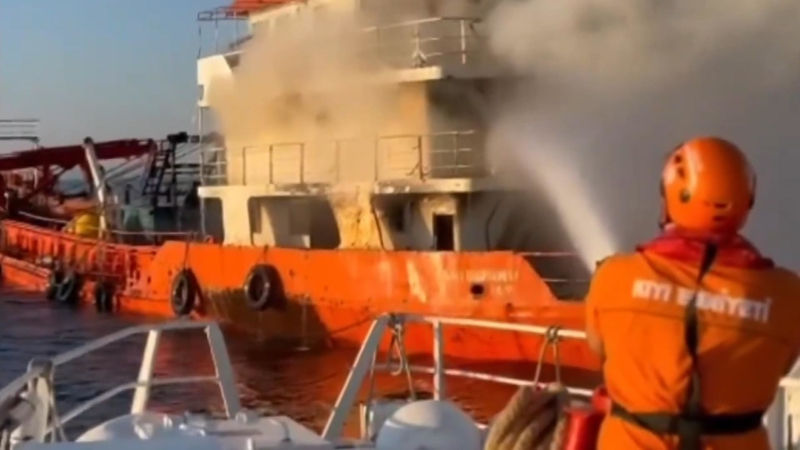 Açıklamada, gemideki söndürme ve soğutma çalışmalarının devam ettiği bildirildi.