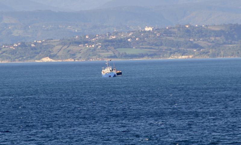 Daha sonra Sahil Güvenlik Komutanlığına ait bot ve helikopter nezaretinde kentin doğal limanına ulaştırılan gemi bir mil açıkta demir attı.