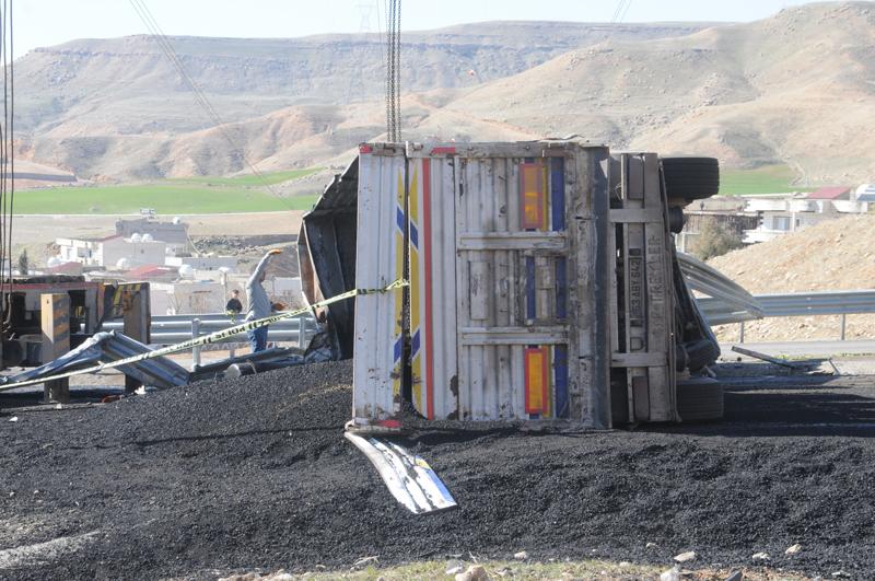 F.A. yönetimindeki 27 AVT 202 plakalı kömür yüklü tır, Cumhuriyet Mahallesi mevkisinde şarampole devrildi.
