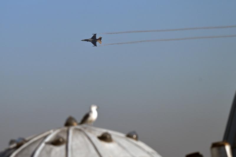 Türk bayraklarıyla alanı dolduran 7'den 70'e her yaştan kişi, SOLOTÜRK pilotlarının F-16 savaş uçaklarıyla yaptığı akrobasi hareketlerini cep telefonlarıyla kaydetti.