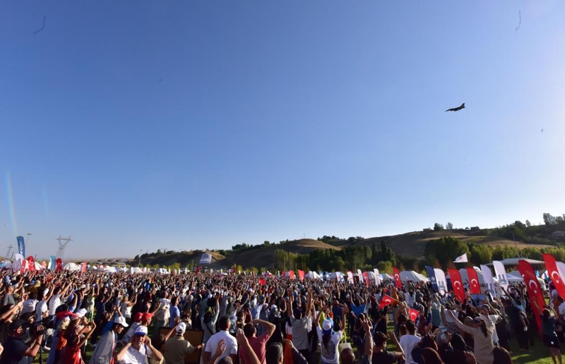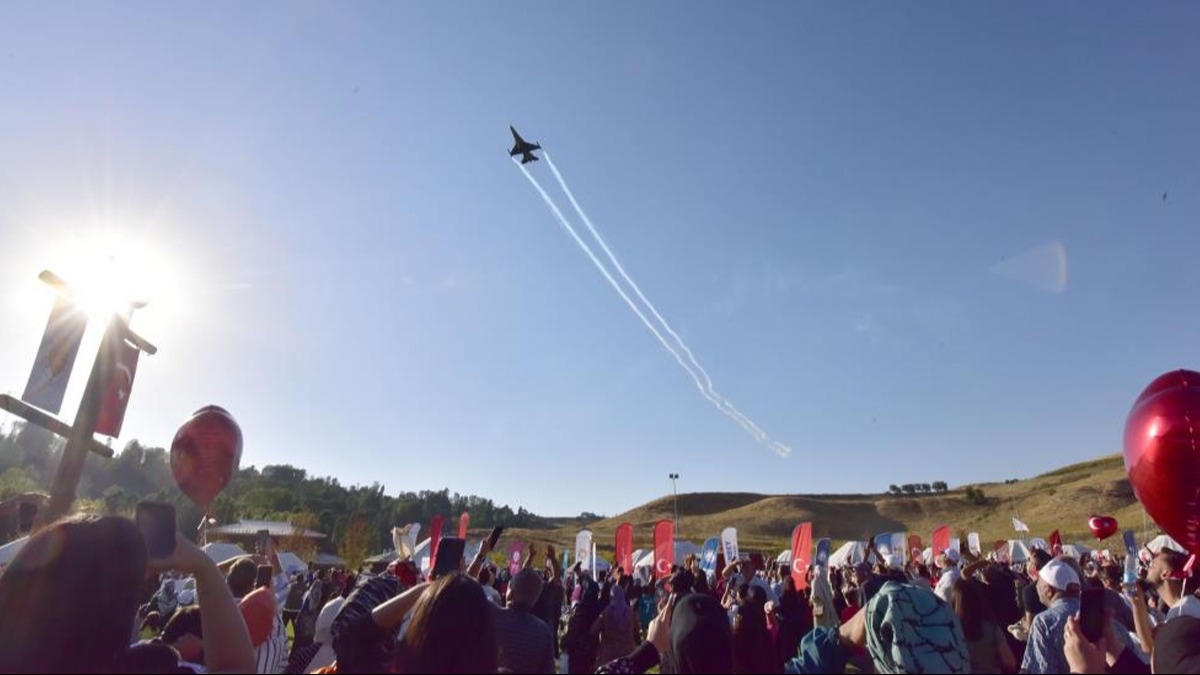 İlçenin Çarho mevkiinde bulunan Recep Tayyip Erdoğan Millet Bahçesi'nde kurulan 1071 Sultan Alparslan Otağındaki alanda toplanan binlerce kişi gösteri uçuşu yapan SOLOTÜRK gösterisini heyecanla izledi.