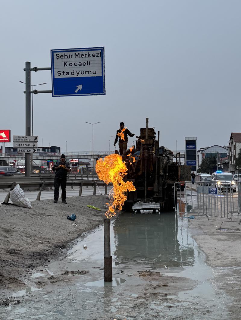 Dumlupınar Mahallesi D-100 kara yolu yan yol üzerinde Ulaştırma ve Altyapı Bakanlığınca yürütülen Kocaeli Körfezray Metro Projesi sondaj çalışmasının 45. metresinde gaz çıkışı oldu.