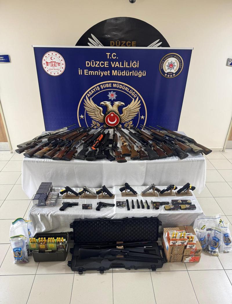 İkamet ve iş yerlerinde yapılan aramada 3'ü ruhsatsız 5 tabanca, 18'i ruhsatlı 20 tüfek, 5 kurusıkı tabanca, 1 havalı tüfek, 1 muşta, 1362 silah kartuşu ve 520 mermi ele geçirildi.