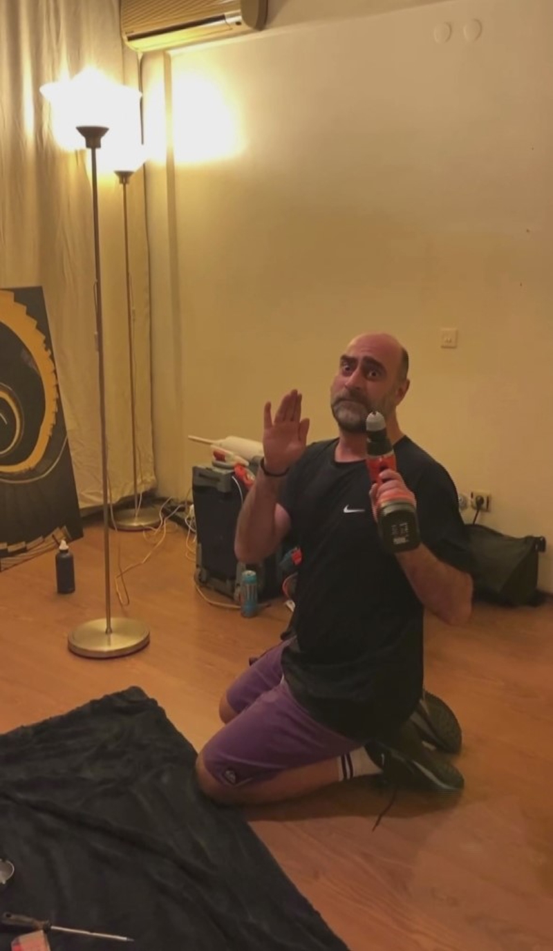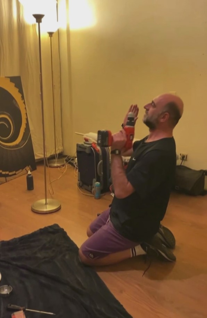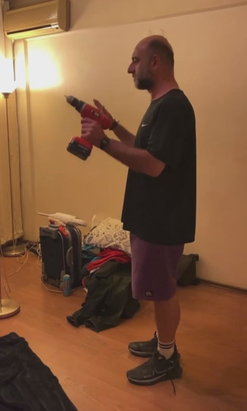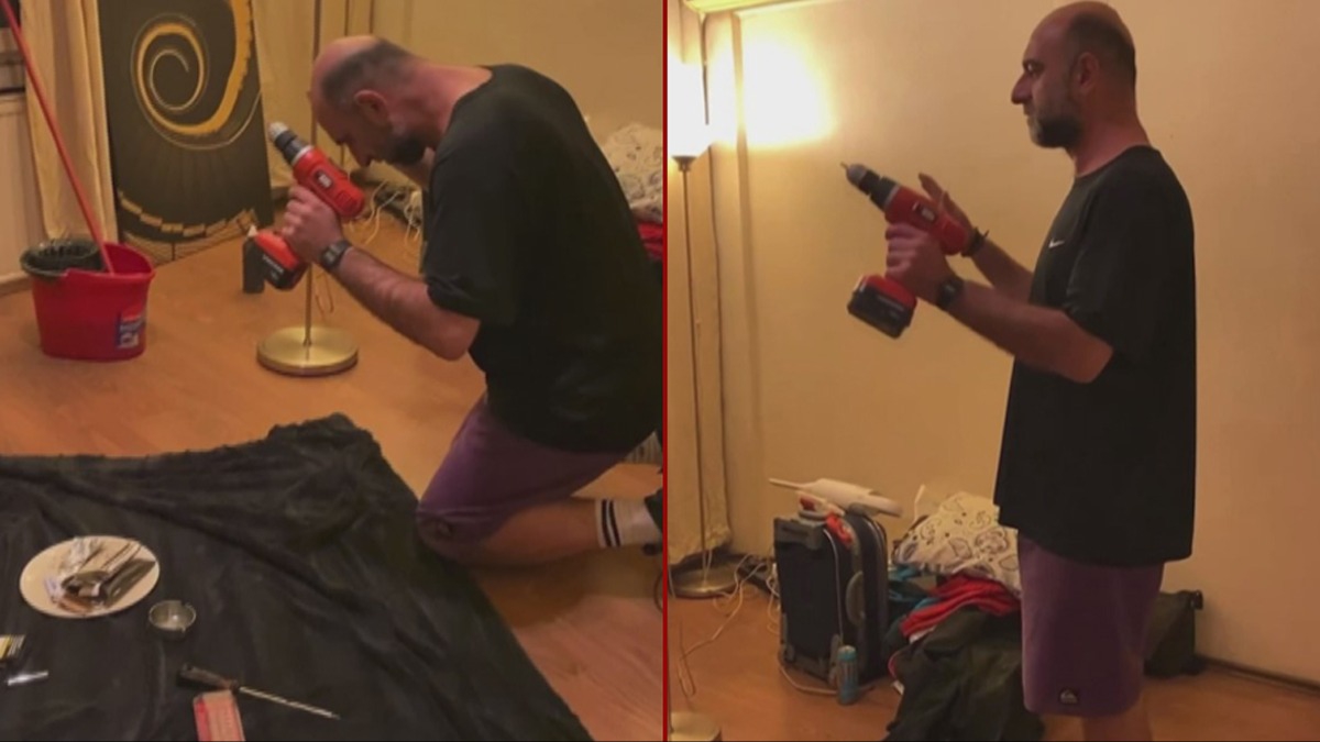 Sol elinde tuttuğu matkabı çalıştırarak mekanik bir ses çıkartan Dilbaz kendisini robot gibi göstermeye çalışıp o anları bir arkadaşına çektirdi.