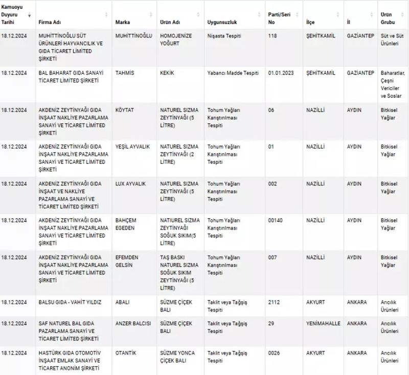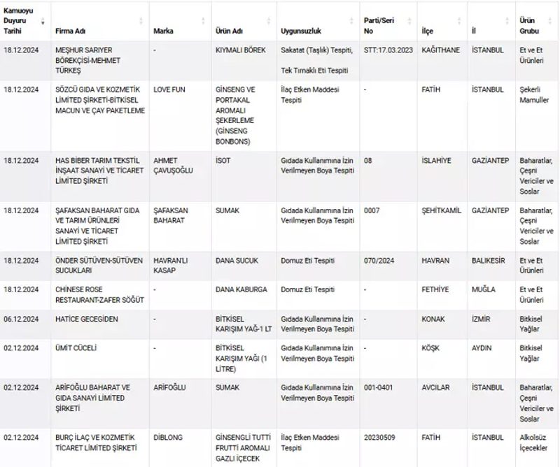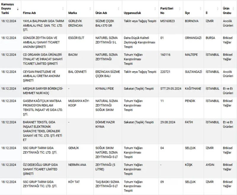 Tarım ve Orman Bakanlığı tarafından ifşa edilen bazı markaların sattığı sucuklarda domuz eti çıktı. Kıymadan bala, zeytinyağından kekiğe kadar birçok üründe sahtecilik tespit edildi. İşte detaylar...