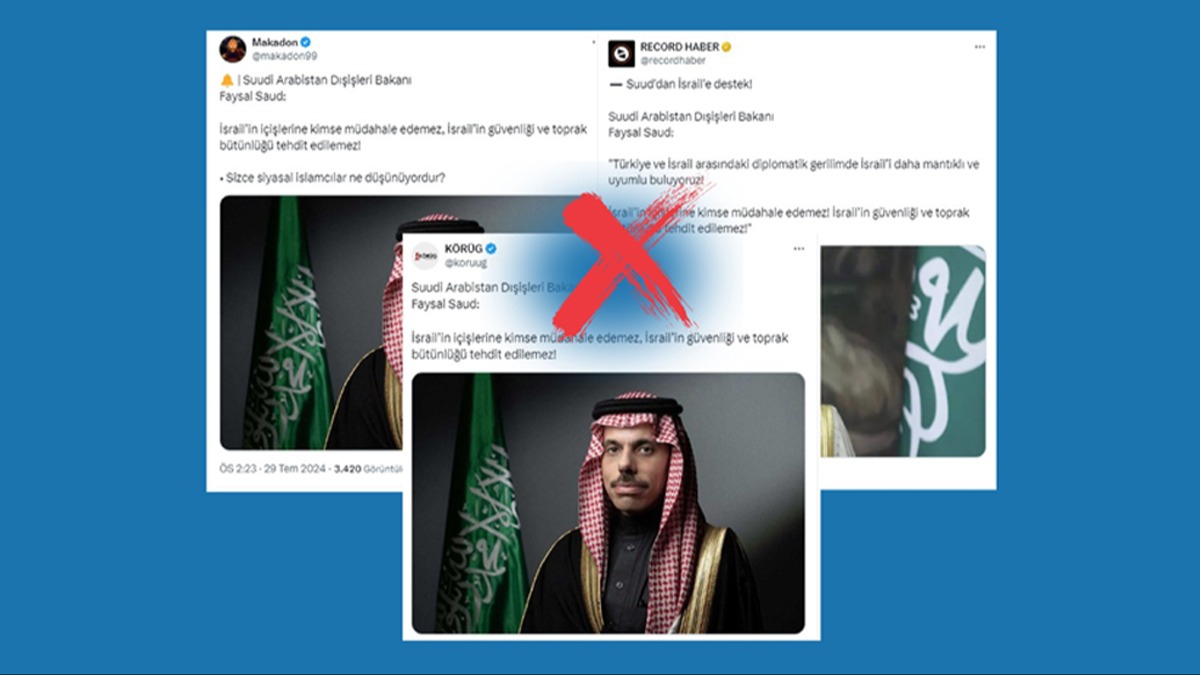 DMM'nin sosyal medya hesabından yapılan açıklamada, "Suudi Arabistan Dışişleri Bakanı, 'Türkiye ve İsrail arasındaki diplomatik gerilimde İsrail'i daha mantıklı ve uyumlu buluyoruz' dedi." iddialarına ilişkin, şu ifadelere yer verildi: