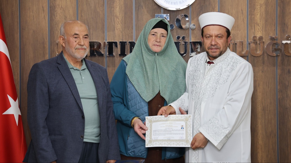 Üstünsoy, "Meryem" ismini alan kadını tebrik ederek, kendisine "ihtida belgesi" ile Kur'an-ı Kerim ve çeşitli kitaplar hediye etti.