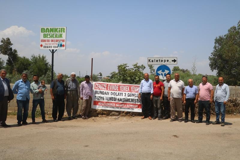 Hatay'ın Kırıkhan ilçesi Camuzkışlası Mahallesi'nde muhtarlık seçimlerinde 460 farkla kazanan Murat Yılmaz, mahallenin yeni muhtarı oldu. Yerel seçimlerin ardından görevini başarıyla yürüten muhtar Yılmaz'ın ilk icraatıysa cenaze sahiplerine büyük külfet olan cenaze yemeğini kaldırmak oldu. Muhtar Yılmaz, mahallelinin fikrini alarak çoğunluğun kararıyla 'Cenaze evinde yemek yenmez, bundan dolayı 3 günlük taziye yemeği kaldırılmıştır' yazılı afişi asarak cenaze yemeğine son verdi. Cenaze yemeğinin yasaklanmasının ardından mahallede 1 aydır kimsenin vefat etmese de ilk cenazede alınan kararın uygulanması bekleniyor.