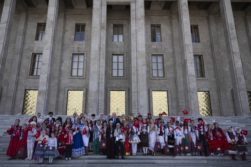Törenin ardından Kurtulmuş, yöresel kıyafetleriyle Meclis'e gelen çocuklarla Şeref Kapısı merdivenlerinde fotoğraf çektirdi.