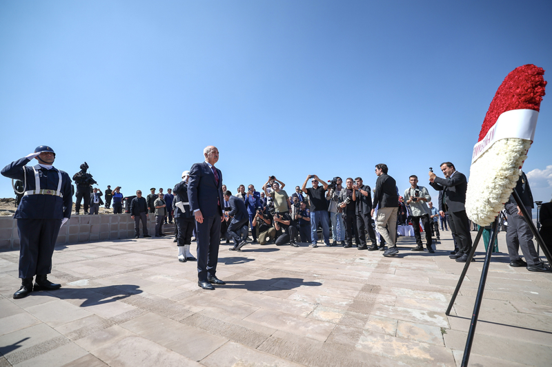 Daha sonra Kurtulmuş, üzerinde "TBMM Başkanı" yazılı kırmızı beyaz karanfillerden oluşan çelengi Başkomutan Mustafa Kemal Anıtı'na bıraktı.
