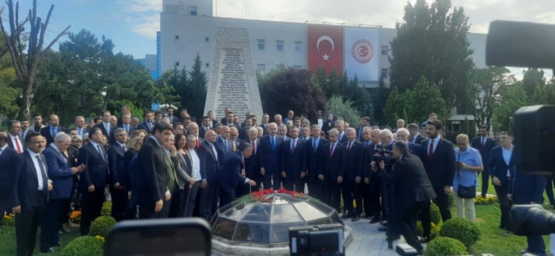 Buradaki törene, TBMM Başkanı Kurtulmuş ile Cumhurbaşkanı Yardımcısı Cevdet Yılmaz, bazı kabine üyeleri ve eski TBMM Başkanı İsmail Kahraman da katıldı.