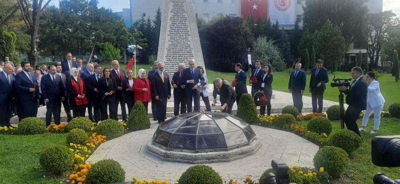 Kurtulmuş ve beraberindekiler, 15 Temmuz 2016 gecesi FETÖ mensuplarınca TBMM'ye atılan ilk bombanın düştüğü alanda yer alan anıta karanfil bıraktı. Kurtulmuş, 15 Temmuz'da şehit düşen vatandaşlar için dua etti.