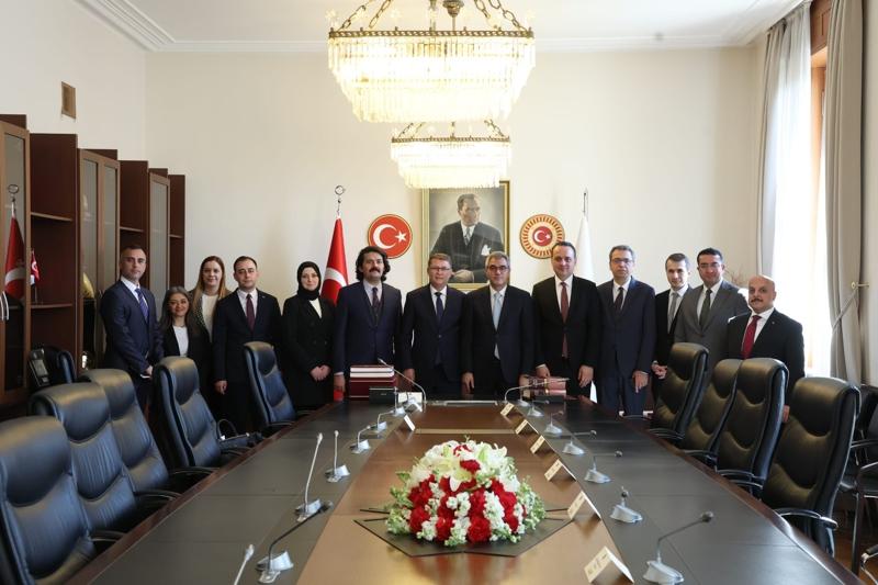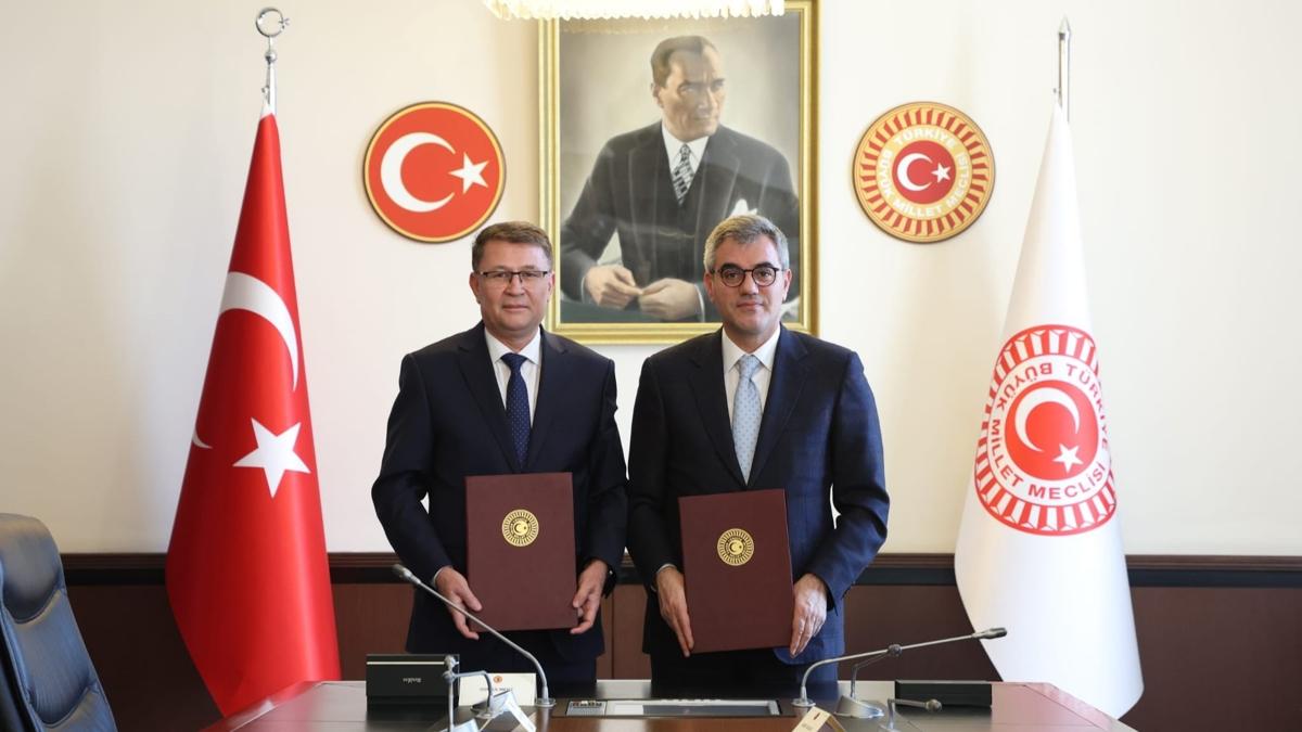 TBMM Genel Sekreterlik Toplantı Salonu'nda düzenlenen imza törenine TBMM Genel Sekreteri Talip Uzun ile TDK Başkanı Osman Mert katıldı.