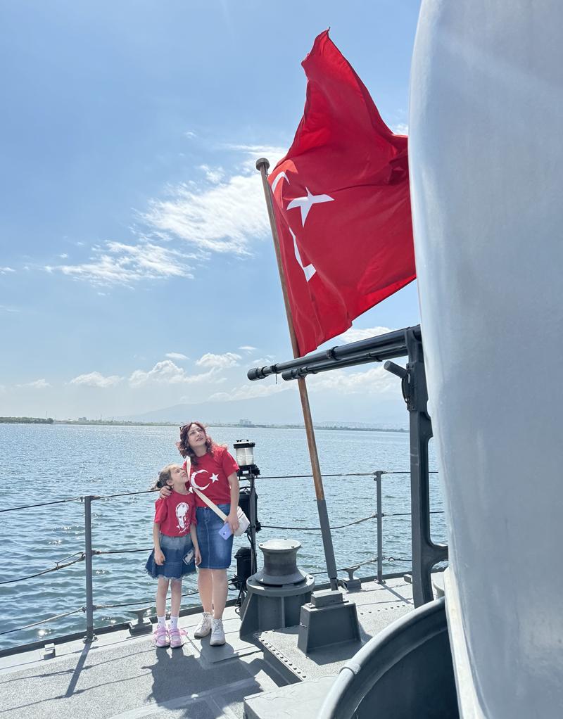 Kızıyla Zonguldak'tan Kocaeli'ye gelen Suna Öztürk, gemiyi ilk ziyaret edenler arasında yer aldı.