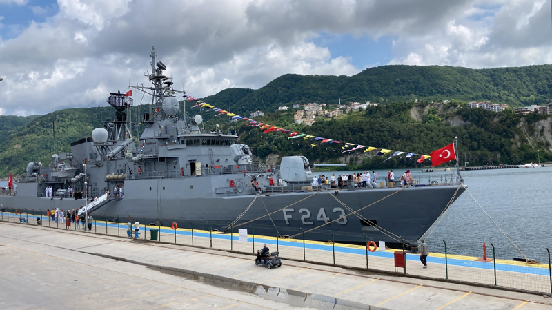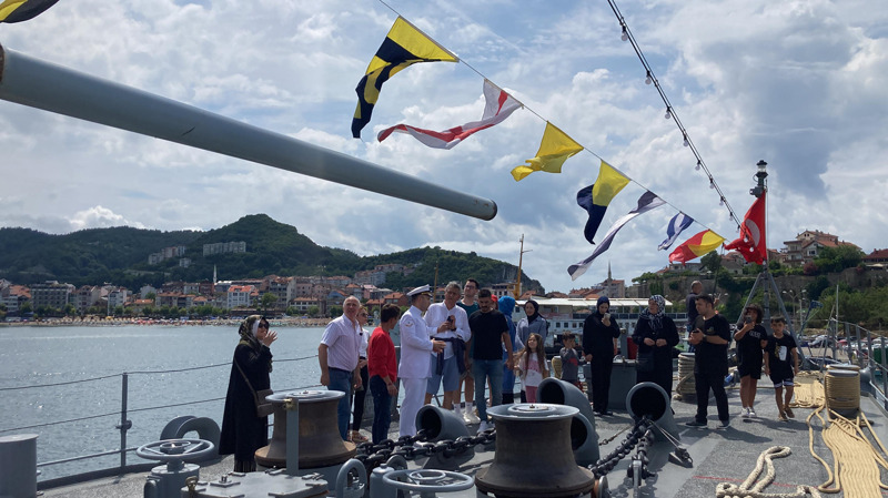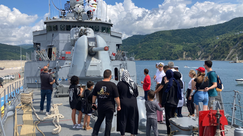 Gruplar halinde gemiye alınan ziyaretçilere, askerler eşlik etti, TCG Yıldırım Fırkateyni hakkında bilgi verdi.