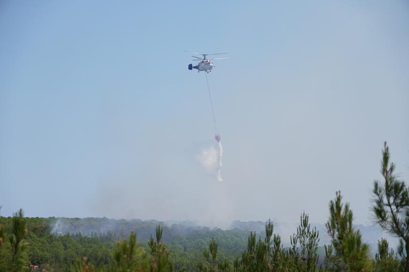 Yangına 3 helikopter, 4 uçak, 14 arazöz, 15 itfaiye aracı, 120 orman işletme personeli ile havadan ve karadan müdahalede bulunuldu.