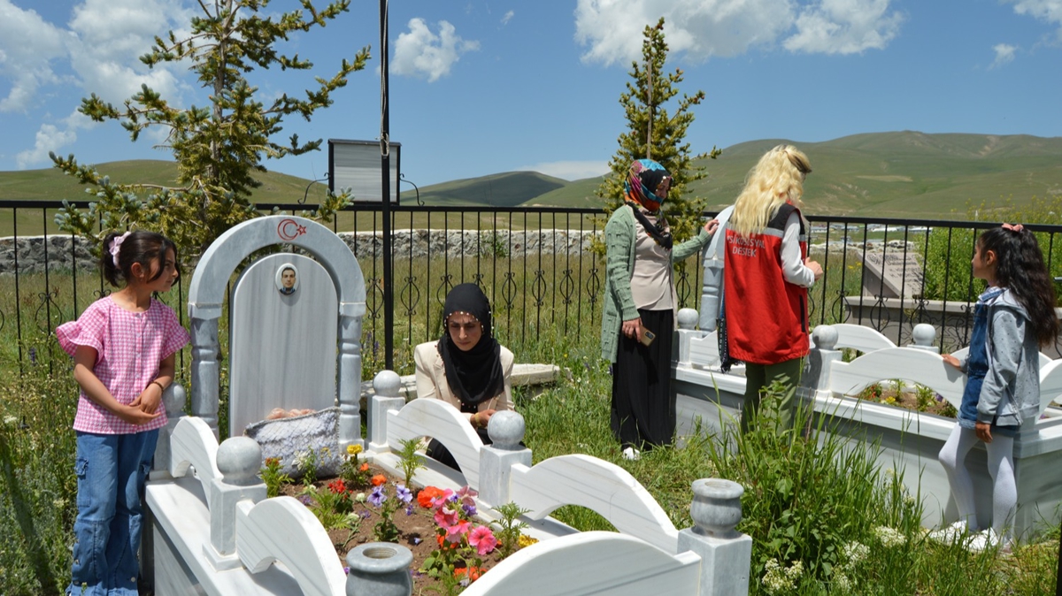 Savcı Küçük'ün çocukları, kardeşleri ile Ahmet Küçük'ün eşi Ferya, çocukları Esmanur ve Ahmet Miran Küçük, mezar başında dua etti.